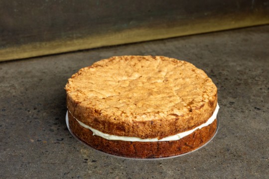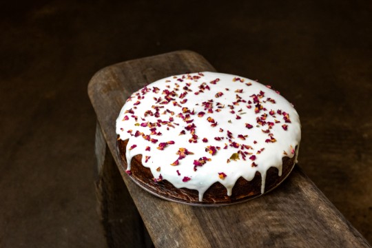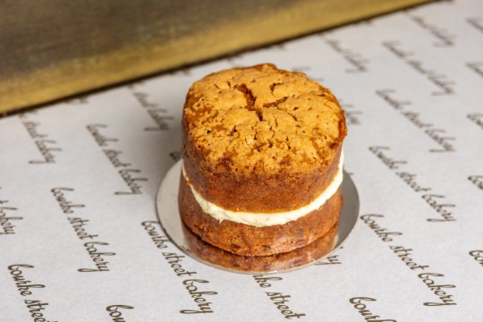 Packed with fresh carrots and crunchy walnuts, delicately spiced with cinnamon, cloves, and nutmeg. Finished with a creamy cream cheese icing between the two layers.