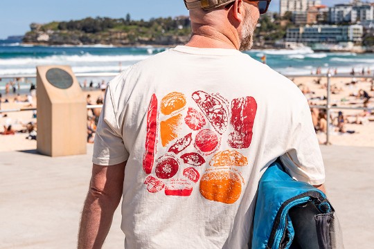 The winning design by Hallie Evans, a Sydney-based creative, draws inspiration from the breads and pastries she loves at our Marrickville bakery. Using slices of sourdough, ciabatta, and baguette as stamps, Hallie created a bold artwork that celebrates the heart of Bourke Street Bakery.